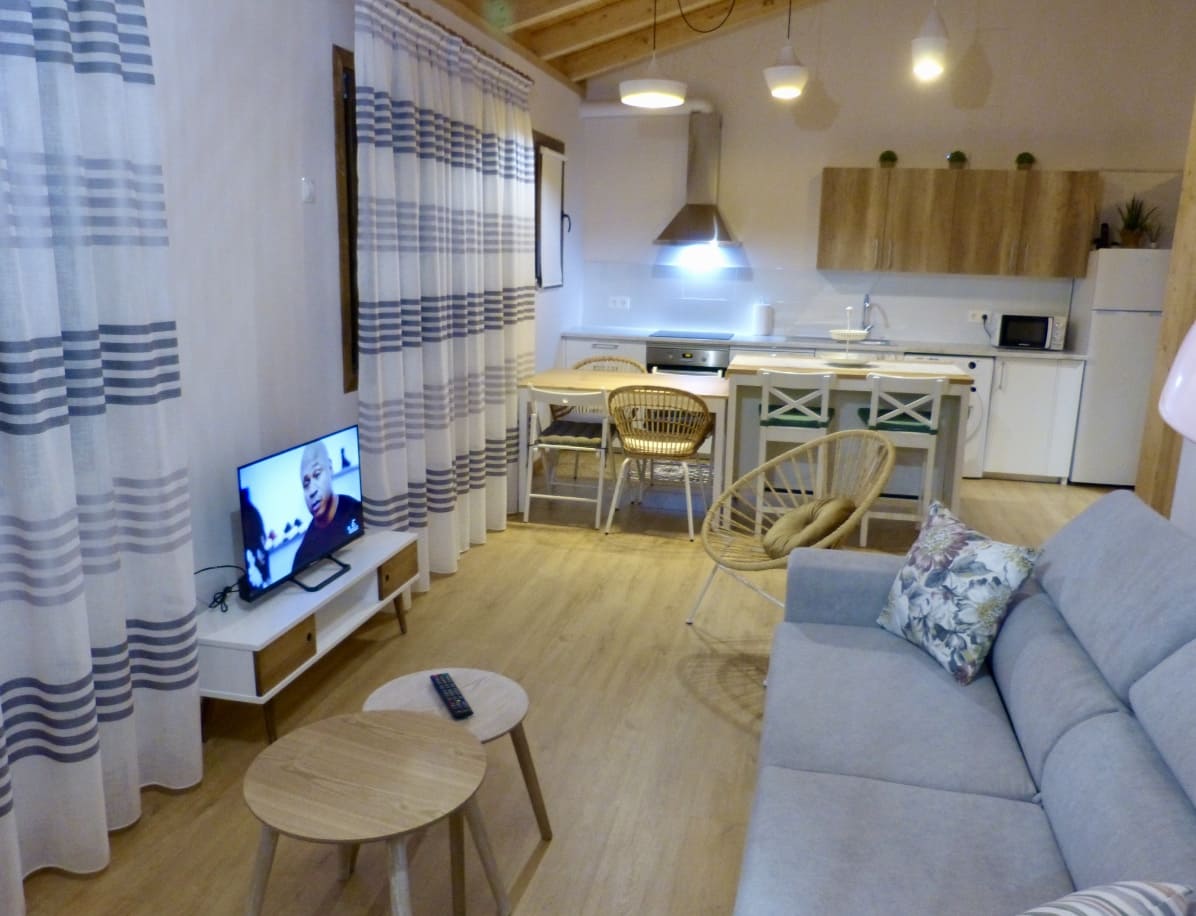 Los alojamientos están totalmente equipados, disponen de un pequeño recibidor, baño, un dormitorio, salón con cocina americana, jardín y entrada autónoma.